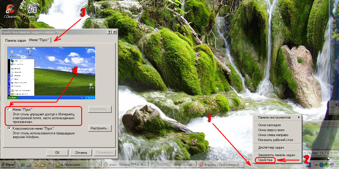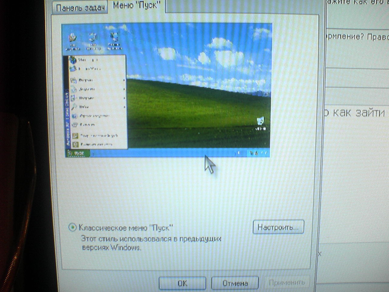 у меня глюк с меню пуск. у меня остался только классическое меню, а меню XP удалилось !!! не подскажите как его восстановить ???