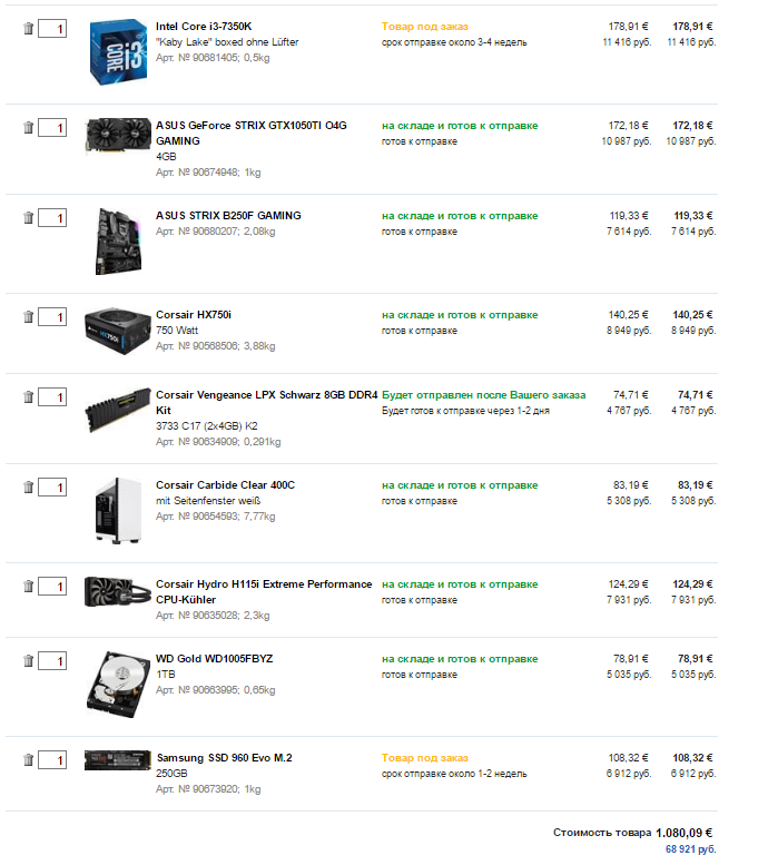 RetMiXone, убери СЖО и на сэкономленные деньги карту смени на GTX 1060 6Gb. Процессор можно сменить на Core i5 и плату подешевле. Или же если смотреть на разгон Core i3-7350K - нужна плата на Z170/Z270.