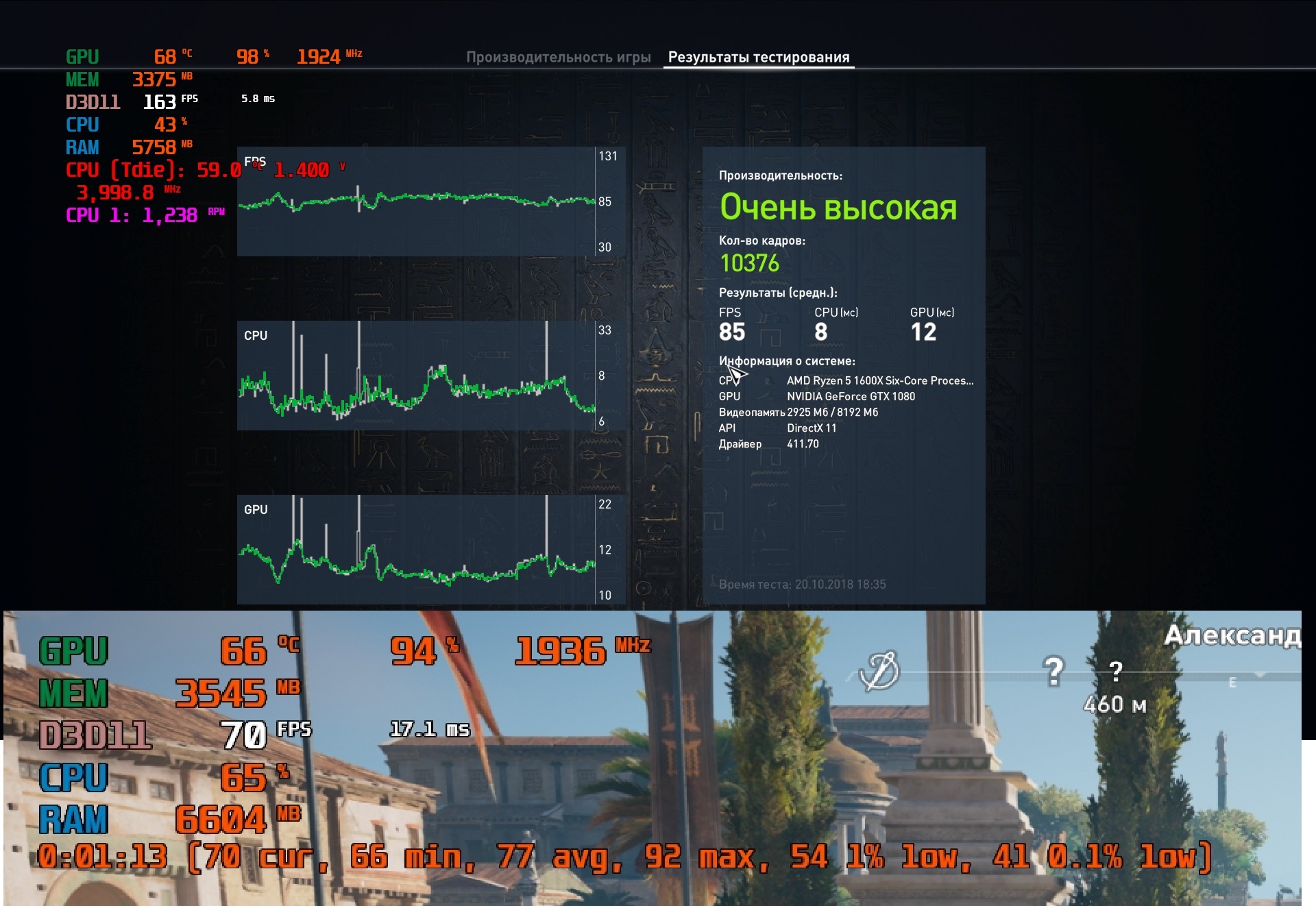 Давай видос что у тебя было не менее 60 в александрии. Видос как я делал после перезагрузки с записи с рабочего стола, а то ты там какие то программы по запускаешь, локации по подгружаешь ))))))))) а не будет видоса то ты просто балабол ))))))))))) Я заметь сделал в видосе все что можно - запустил бенч на показ минимальных 1% и 0.1%, запускал игру после перезагрузки компа, вывел график времени кадра (который по сути и отвечает за плавность картинки), сделал показ всех процессов и запись с момента запуска с рабочего стола.