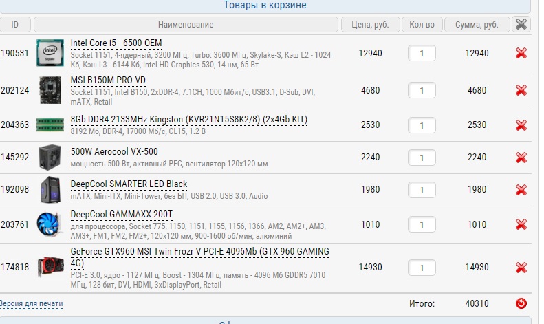 3) В своем сообщении обязательно укажите, что конкретно предполагаете купить (системный блок, монитор, периферия и т.п.)