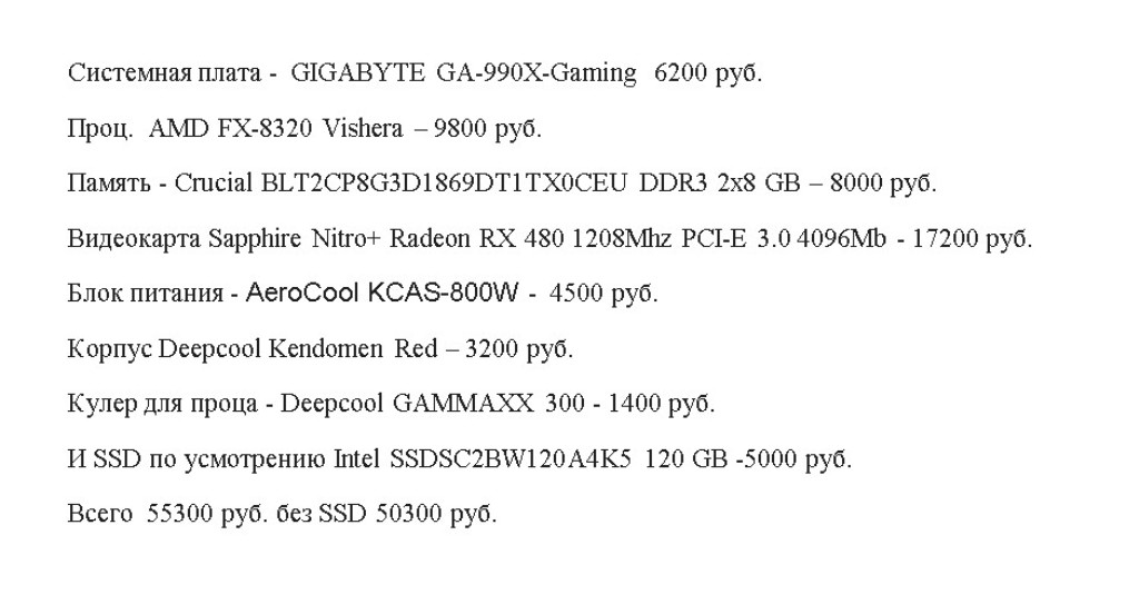 если хочешь конкретных советов, напиши, сколько планируешь потратить и кинь ссылку на магаз, где собираешься всё брать. Хотя и так могу сказать, что покупать новый комп на АМ3+ сокете- не очень дальновидно. Чтобы был хоть какой-нибудь выбор, можно подождать выхода процессоров на АМ4, а пока есть только LGA 1151.