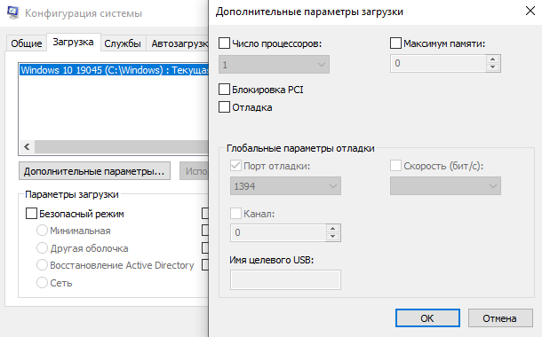 6) Зайди в конфигурацию системы => Загрузка и сними галочки с Число процессоров и Максимум памяти: