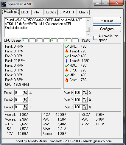 Компьютер показывает такую температуру, никакие приложения не запущены.