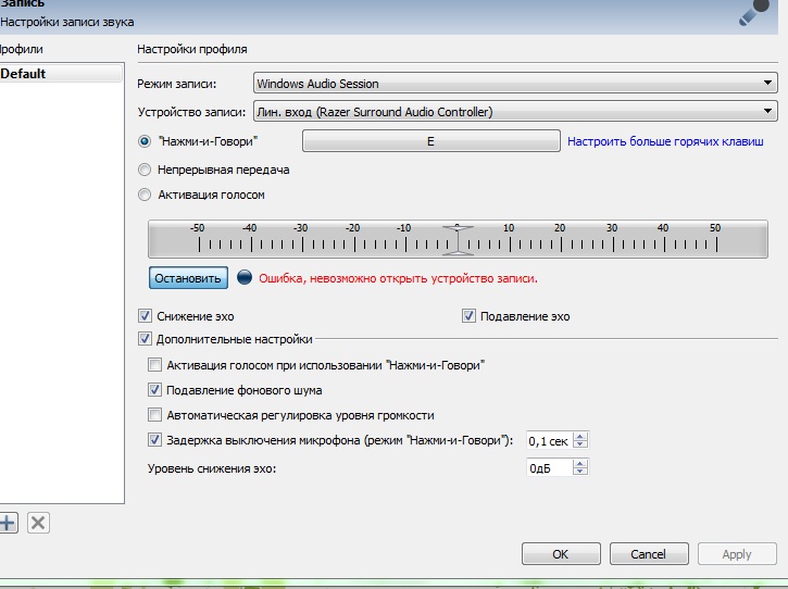 Подскажите как настроить микрофон. Стандартный работает, а вот рейзер не получается использовать