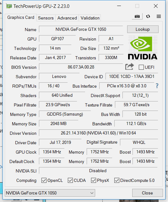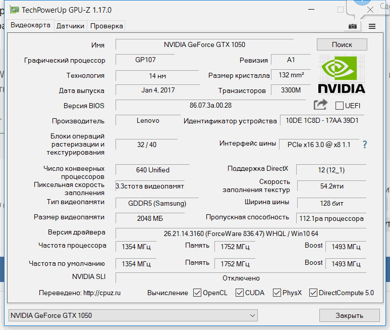 ...но чтобы убедиться происходит ли так постоянно, нужно сделать скриншот сразу же после запуска GPU-Z, через несколько секунд может включиться режим энергосбережения и будут отображаться минимальные данные. Лучше скачть последнюю английскую версию GPU-Z: в старой русифицированной из-за перевода часть данных не видно (искажает некоторые параметры - цифры видно не полностью) и может показывать данные более нового железа некорректно. Например: установлен драйвер версии 26.21.14.3160 (431.60, как на моих скринах), а написано "ForceWare 836.47" - старая версия программы неправильно определяет более новую версию драйвера.