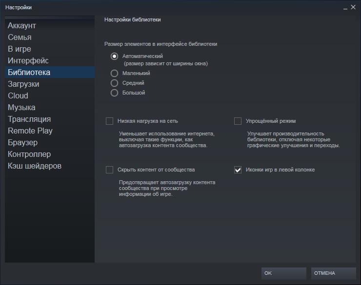 Какие установлены настройки библиотеки?