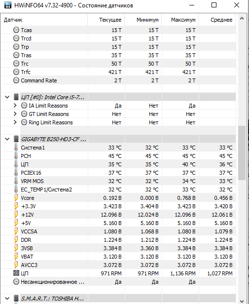 Скрины с HWiNFO после ~ 15 мин. беспрерывной работы системы, это маловато. Для более точных результатов желательно "погонять" комп несколько часов. В идеале весь день - утром включить, а вечером перед выключением делать скрины, и чтобы это время он активно работал (игры и т.п.).