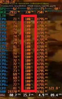 А меня смущает почему в Фурмарке общая загрузка ЦП иногда доходит до 100%...