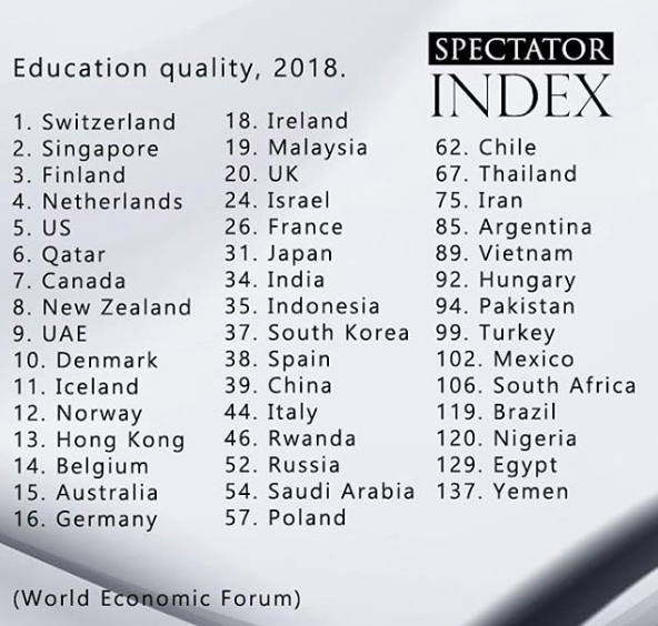 СНГ не вытащит никак, в сравнении с ЕС и США, где в образование и науку вливаю огромные средства. Тут даже сравнивать глупо. Да блин, Вы сидите за американским компьютером, в американском интернете, чистите зубы немецкой электрической зубной щёткой (лучшей в мире), ездите на европейских автобусах и американских грузовиках (лучших в мире, по версии даже российских журналов), покупаете айфоны, стоите за ними в очередях и ДОЛЛАР - самая надёжная валюта, в которой совершают 99% всех сделок, второе место - евро. Умные люди построили всё это, нобелевских лауреатов больше всего в США, как и изобретений, достижений. Я много читал про американские школы, они реально хороши по качеству образования, столовой, подходу к ученикам. подготовке к рабочей деятельности, выбору профессии, и даже банально доставки учеников.
