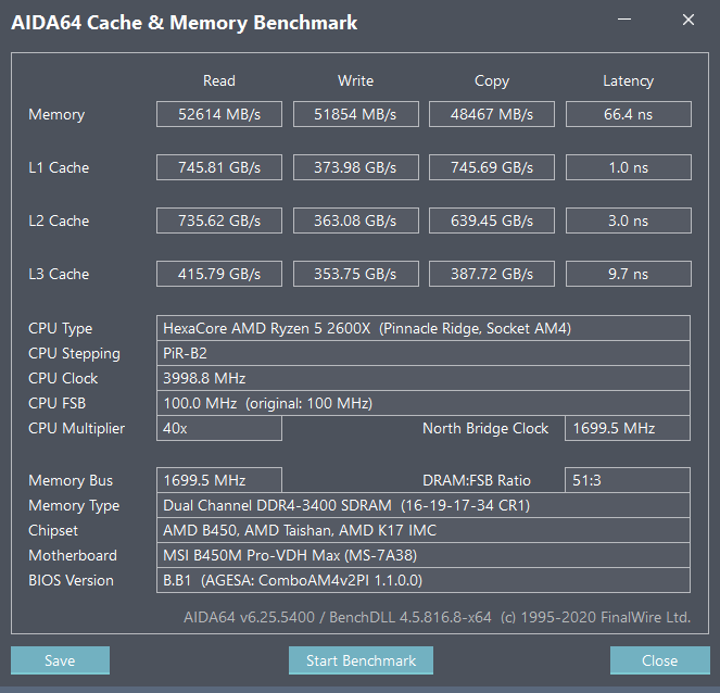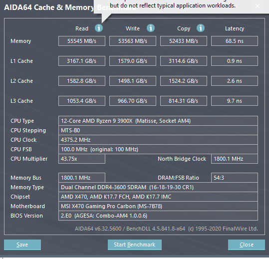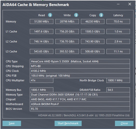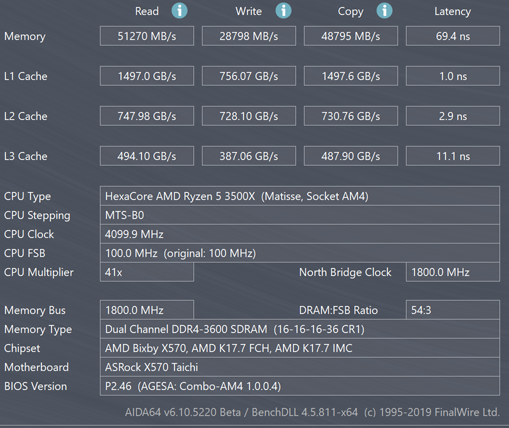 можно вопрос - а зачем тебе результаты в бенчмарке аида? Если просто цифирки - хакни его артмани, пропиши себе по 500 тыщ мб/с чтение/ запись и кайфуй.