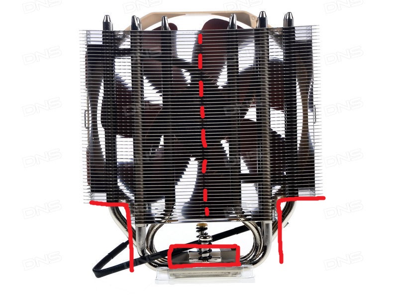 замеряй тогда расстояние до креплений и высоту радиатора и по нему подбирай вентиляторы. попробуй демонтировать белый кожух если он снимается. можно еще Arctic Cooling Freezer i30 CO как пример глянуть. у него разлет тепло трубок достаточно низкий среди подобных радиаторов но он может вступить в конфликт сокетом и экспрессом