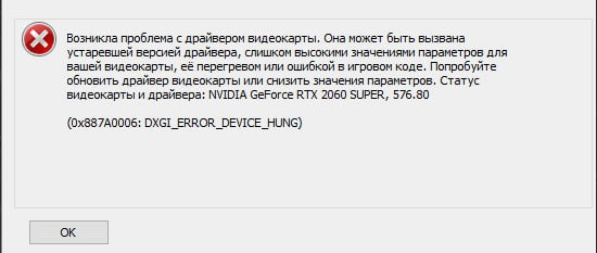 Во время игры, в требовательных играх, вылетает такая ошибка. Драйвер самый последний, винду переустанавливал, видеокарта не греется (Хотспот 75 градусов). Раньше такого не было