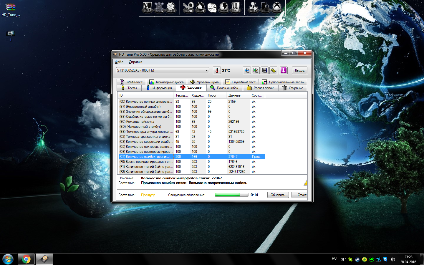 Именно об этом СМАРТ и говорит. Заменить сата-кабель рекомендуется. В крайнем случае хотя бы просто "передёрнуть" его, т.к. могли окислиться контакты разъёмов. Ещё читал про возникновение данной ошибки при разгоне.