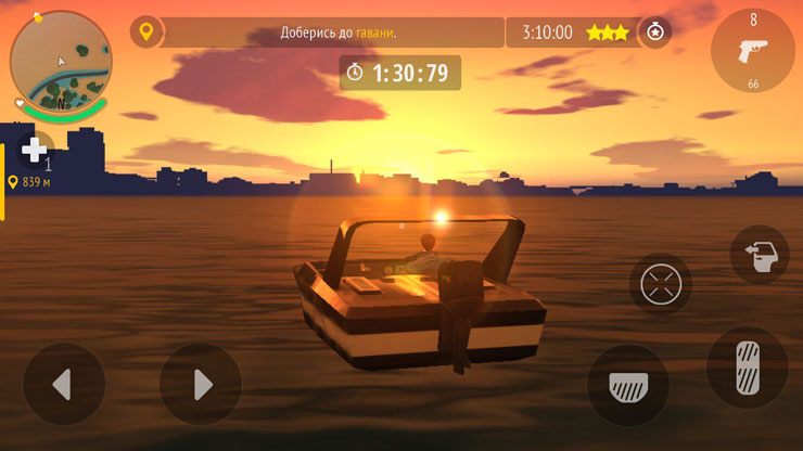 В целом, с анимацией все неплохо. Мы теперь наблюдаем, как игрок избивает горожан, «отжимает» тачки, убивает боссов — все красиво. Людей на улицах примерно столько же, сколько и в Gangstar Vegas, но вот с дальностью прорисовки Gameloft разочаровали по полной. На iPhone 7 при полете с вертолета мы видим какие-то угловатые острова, мутную гладь воды, коробки домов . С высоты игра выглядит гораздо хуже Gangstar Rio, что вы можете лицезреть на скриншоте ниже.