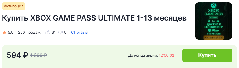 Покупка Xbox Game Pass на маркетплейсах