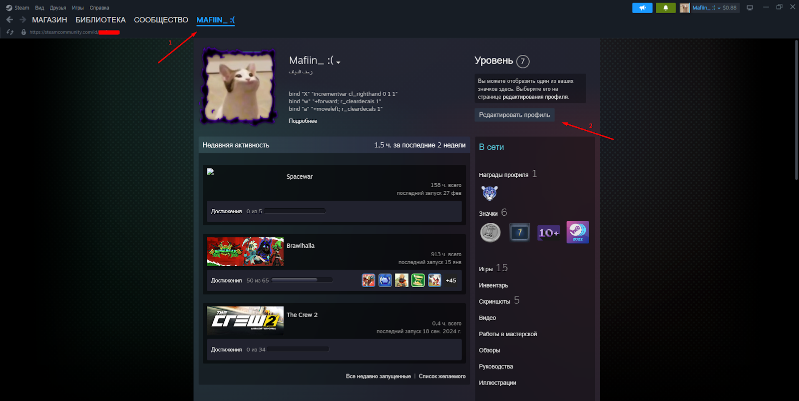 - Зайдите на главную страницу аккаунта и нажмите «Редактировать профиль».