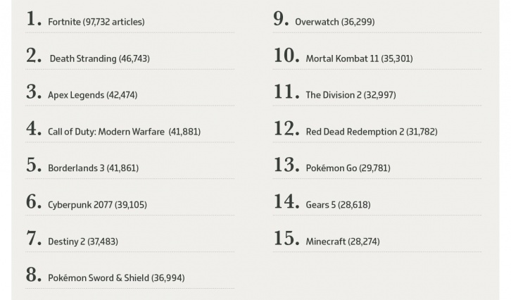Игры, наиболее подробно освещаемые в статьях (в скобках — число материалов):