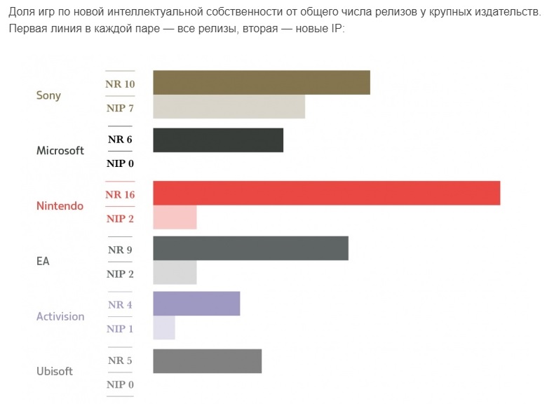 По количеству новых IP как бы понятно, какая компания двигает индустрию вперёд, а какие только и могут что доить коров. Будущее за Сони, короче.