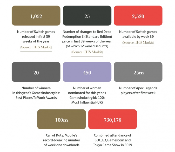 • Мероприятия GDC, E3, gamescom и Tokyo Game Show в 2019 году посетили в общей сложности 730 176 человек.