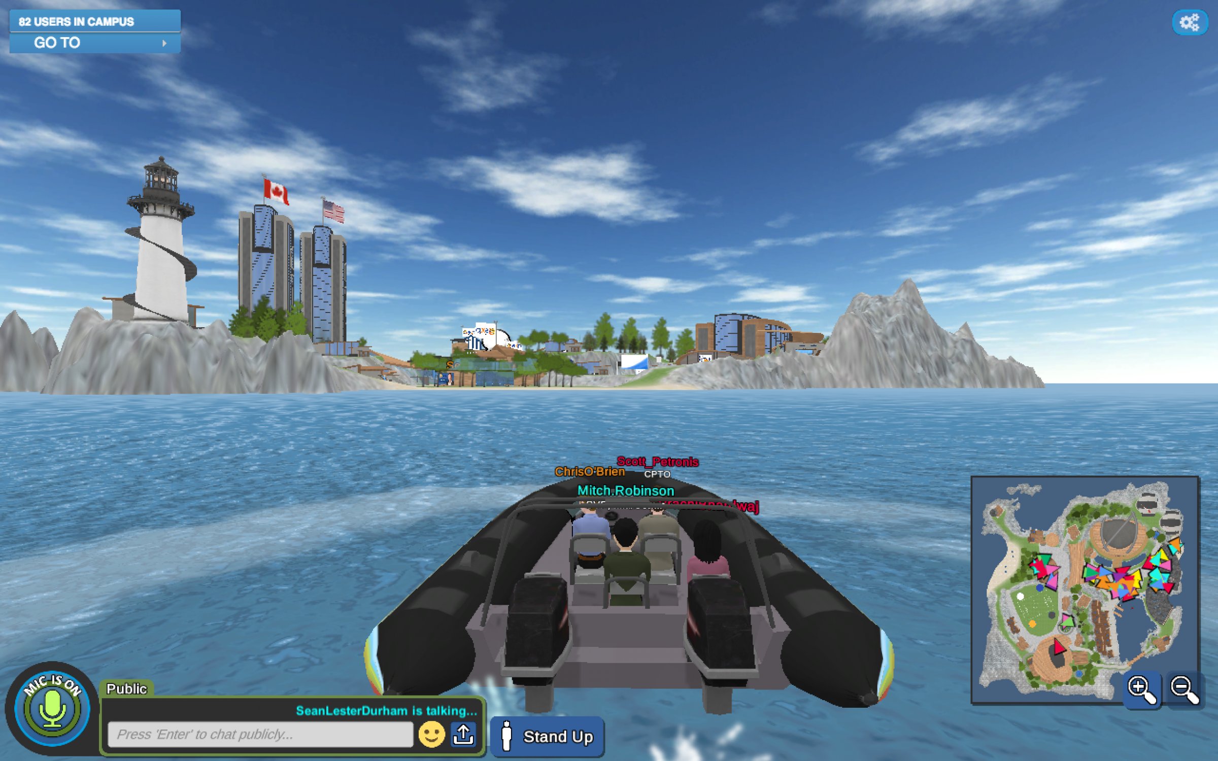 На острове можно увидеть огромные строения и большое количество площадей для переговоров. Передвижение персонажа осуществляется с помощью мыши или клавиатуры, в точности, как в компьютерной игре. Когда сотрудники говорят, возле их персонажей появляется индикация для того, чтобы было понятно, кто именно говорит. Кроме того, сотрудники могут демонстрировать экран своего компьютера и проводить презентации.
