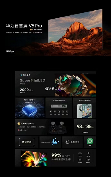 Новинки характеризуются панелями Super Mini LED с разрешением 4K, яркостью 1600 и 2000 нит соответственно, кадровой частотой 120 Гц, 95-процентным охватом цветовой палитры DCI-P3, отображением 1,07 миллиарда цветовых оттенков, процессором Honghu 900, производительность которого в два раза выше, чем у предыдущего поколения, 6 ГБ оперативной и 64 ГБ флеш-памятью, функцией апскейлинга изображение Full HD в 4K, звуковой системой HUAWEI SOUND формата 3.1.2, 24-Мп камерой, интерфейсами HDMI 2.1 и USB 3.0 2, поддержкой двухдиапазонного Wi-Fi и предустановленной HarmonyOS 4.