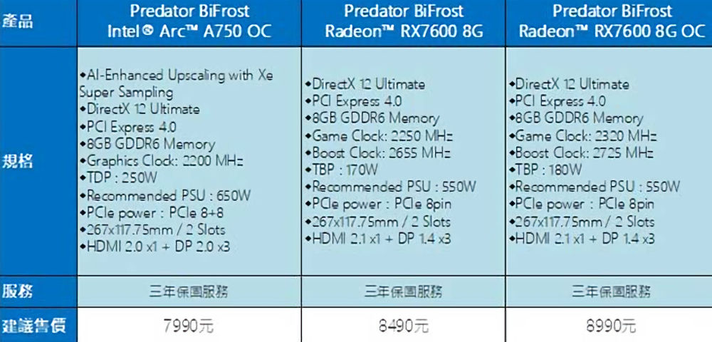 Если верить XFastest, Acer решила пойти на следующий шаг. А именно выпустить видеокарты Predator BiFrost на основе Arc A750 и Radeon RX 7600. Последний GPU был представлен незадолго до Computex. Планируется как стандартный вариант, так и OC. В случае OC планка Power Limit будет поднята, поэтому и частоты наверняка будут выше.