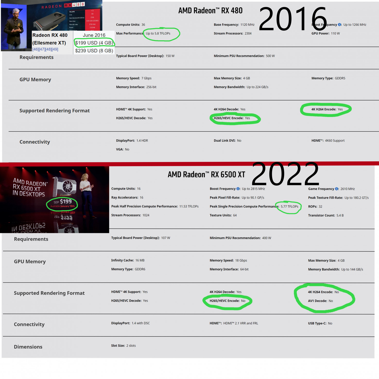 Видимо, инженеры AMD тщательно разобрались в специфике Etherium — и произвели соответствующие изменения в архитектуре GPU. Но вообще сравнивать технические характеристики видеокарт за последние годы довольно печально, потому что это слегка похоже на деградацию.