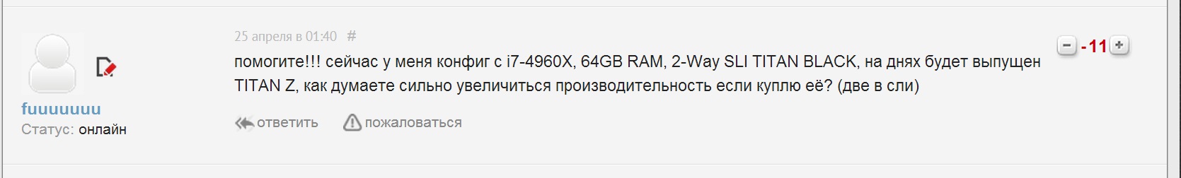 hizer HQ fuuuuuuu Лол шта? Я говорил что то про многопоточность? А ты в курсе что WOT как бе задействует только 1 ядро, не? ФПС этой игры зависит только от процессора. Видюхи 560Ti за глаза хватает. А то что у интела производительность на ядро чуть ли не в 2 раза выше амд, это факт.