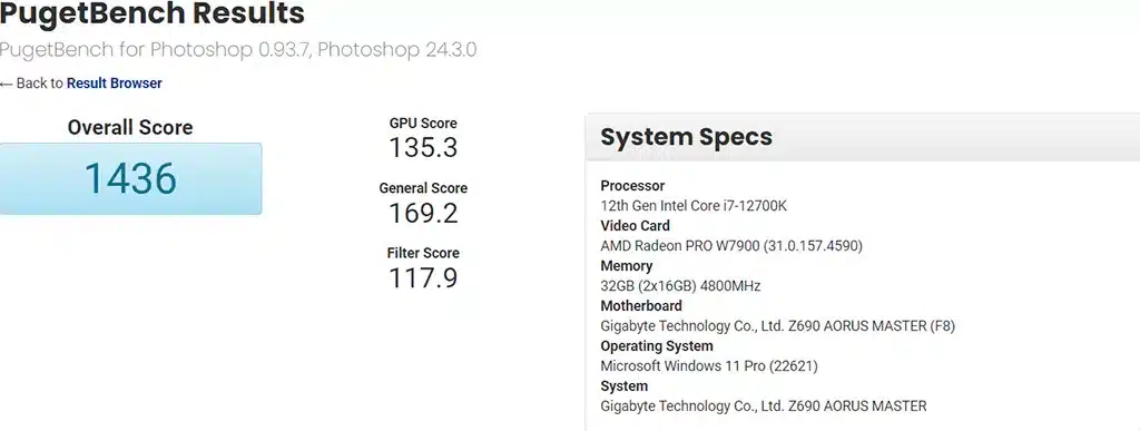 Есть даже относительные данные о быстродействии. В собственном тесте Puget Bench на основе Photoshop новинка AMD набрала 135 баллов. Для сравнения, RTX 6000 Ada (грубо говоря, аналог RTX 4090) в этом же тесте набирает 150 баллов.