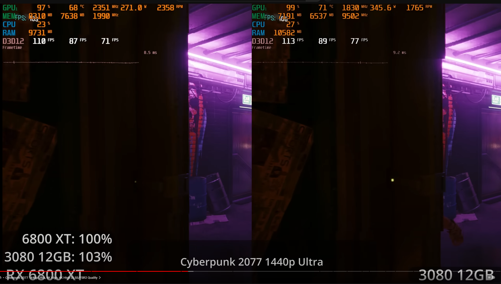 К примеру 271 ват 6800хт против 345 тут 3080 на 12.