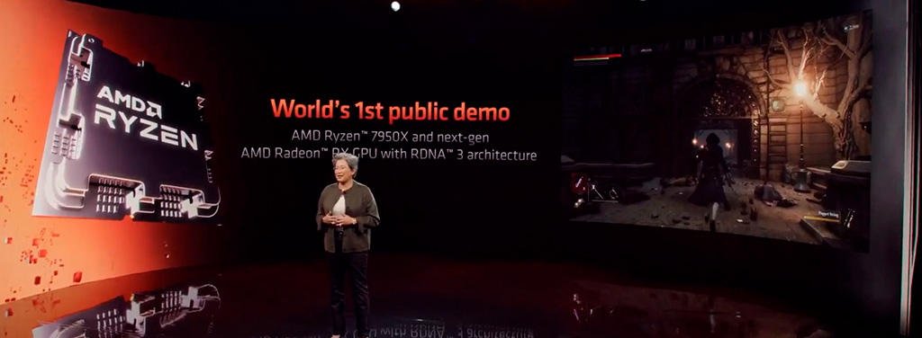 AMD показала небольшое демо в игре Lies Of P. Игра работала при разрешении 4К и ультра-настройках графики. В паре с неназванной видеокартой был новый 16-ядерный процессор Ryzen 9 7950X. К сожалению, из этого демо даже ориентировочно непонятен уровень быстродействия графики.
