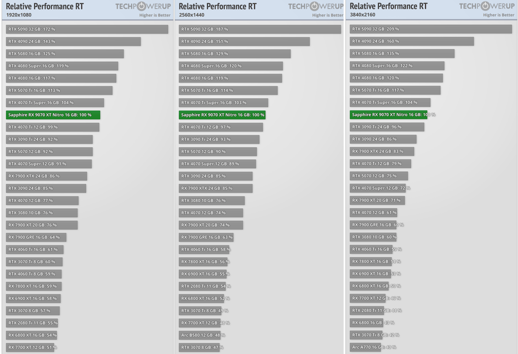 Ну вообще тесты показывают что 4080 на 6% мощнее чем 9070XT без трассировки лучшей в среднем. А с трассировкой лучей 4080 на 20% лучше чем 9070XT. А по цене 9070 XT начинается со 100 тысяч, а 4080 начинается от 135 тысяч, разница в цене на 30%. Так что если говорить тут уж о конкуренции то все таки эти видеокарты не конкуренты друг другу.