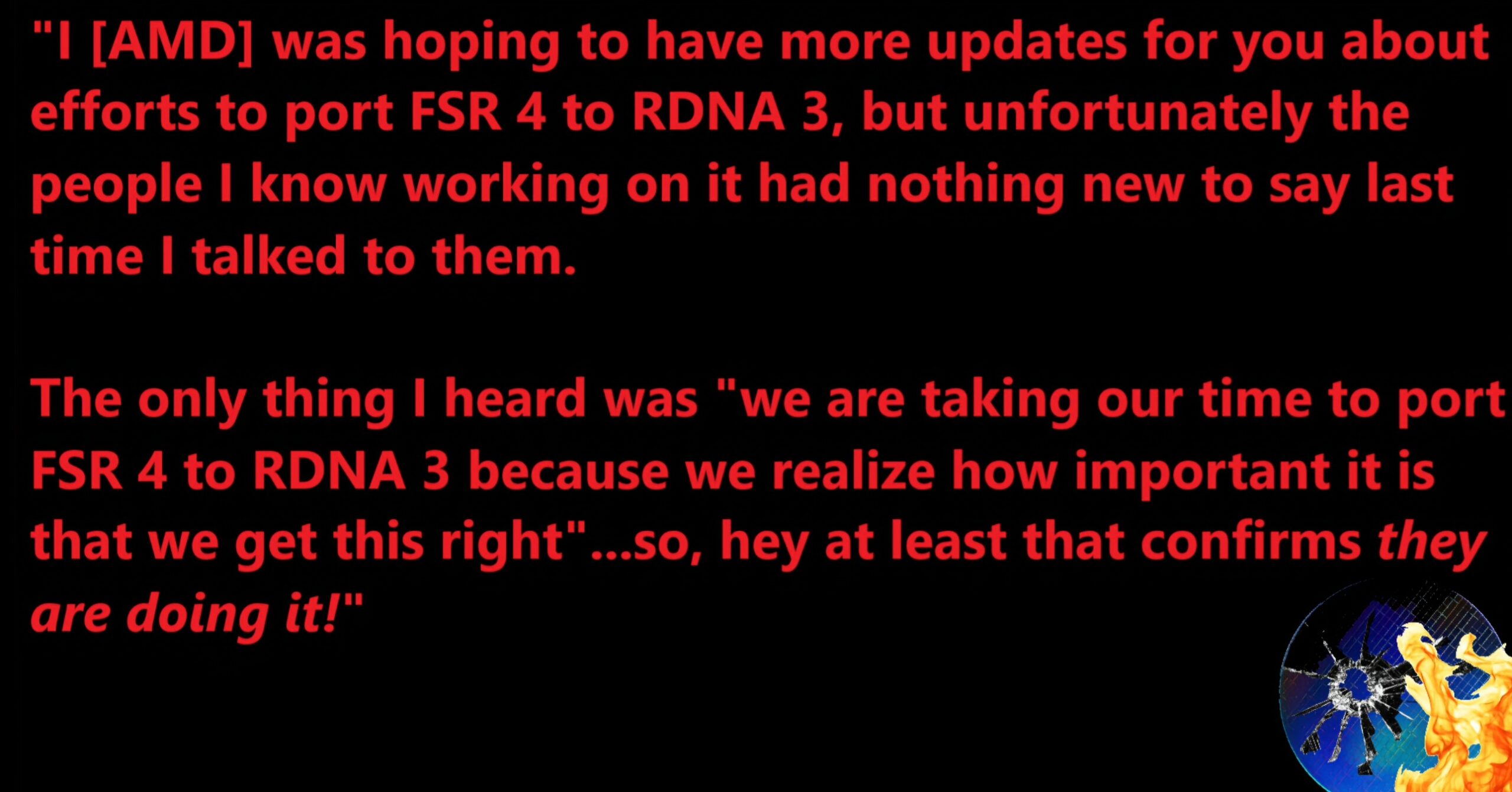 У 7000 и ниже нет тензорных ядер. На чем они там собираются заводить fsr4? Только воздух сотрясают, чтобы хомячки, купившие 7900 не слишком обиделись.