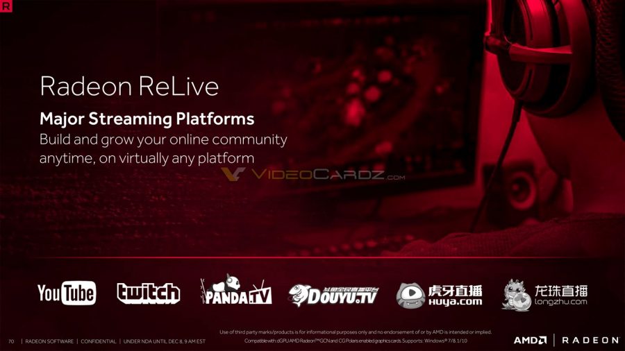 8 декабря компания АМД выпустит новые драйвера с поддержкой записи и стриминга а также технологией охлаждения видеокарты "Radeon Chill" и поддержкой Wattman видеокартами серий 200/300/Fury Со всеми подробностями можно ознакомится на официальном сайте.