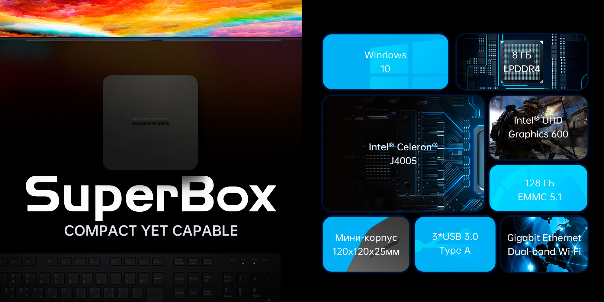 Совсем скоро в продажу выходит Superbox — новый мини-ПК(неттоп) от Alldocube, отличная замена вашего старого настольного системного блока. Благодаря компактным размерам его можно установить за монитором, положить под телевизор или закрепить на стене.