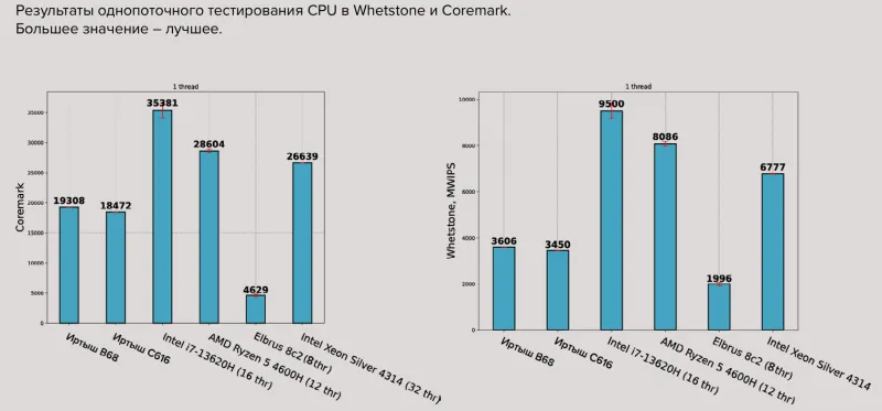 Технические характеристики младшей модели Иртыш C616 включают один чиплет с 16 ядрами и поддержкой 32 потоков. Устройство работает на частоте до 2,2 ГГц при тепловыделении около 100-120 Вт и поддерживает четыре канала оперативной памяти DDR4-3200 ECC. Для подключения периферии предусмотрено 64 линии интерфейса PCIe 4.0. Средняя модель C632 компонуется уже из двух кристаллов, что обеспечивает 32 ядра, 64 потока и удвоенное количество линий PCIe. Флагманский процессор Иртыш C664 объединяет четыре чиплета, предоставляя 64 ядра и 128 потоков при TDP до 300 Вт. По заявлениям разработчиков, производительность старшего чипа достигает 3072 Гфлопс в операциях двойной точности, что делает его конкурентом для решений уровня Intel Xeon Platinum 8380.