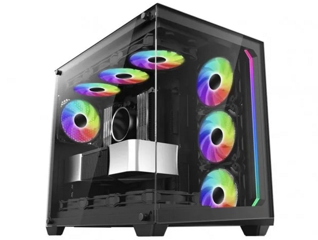 ...где попытались сделать переднюю и боковую стенку прозрачными. В «аквариуме» такого типа, что в посте, очень хорошая циркуляция воздуха (если правильно, конечно, ту организовать), так как на приток и выдув воздуха работают минимум 7 вентилятора (то есть 3 шт. – на приток воздуха; и 4 шт. – на выдув); в сравнении с обычным корпусом, где на вдув, чаще всего, трудятся 2-3 шт. вентилятора и 2 шт. на выдув (конфигурацией «назад и вверх»). Более того – у вас ещё остаётся место для размещения 2-3 вентиляторов на выдув/приток на боковой стенке. Это самый заполненный вентиляторами корпус из всех видов, что есть для обычного потребителя; больше – только в сервисных решениях.