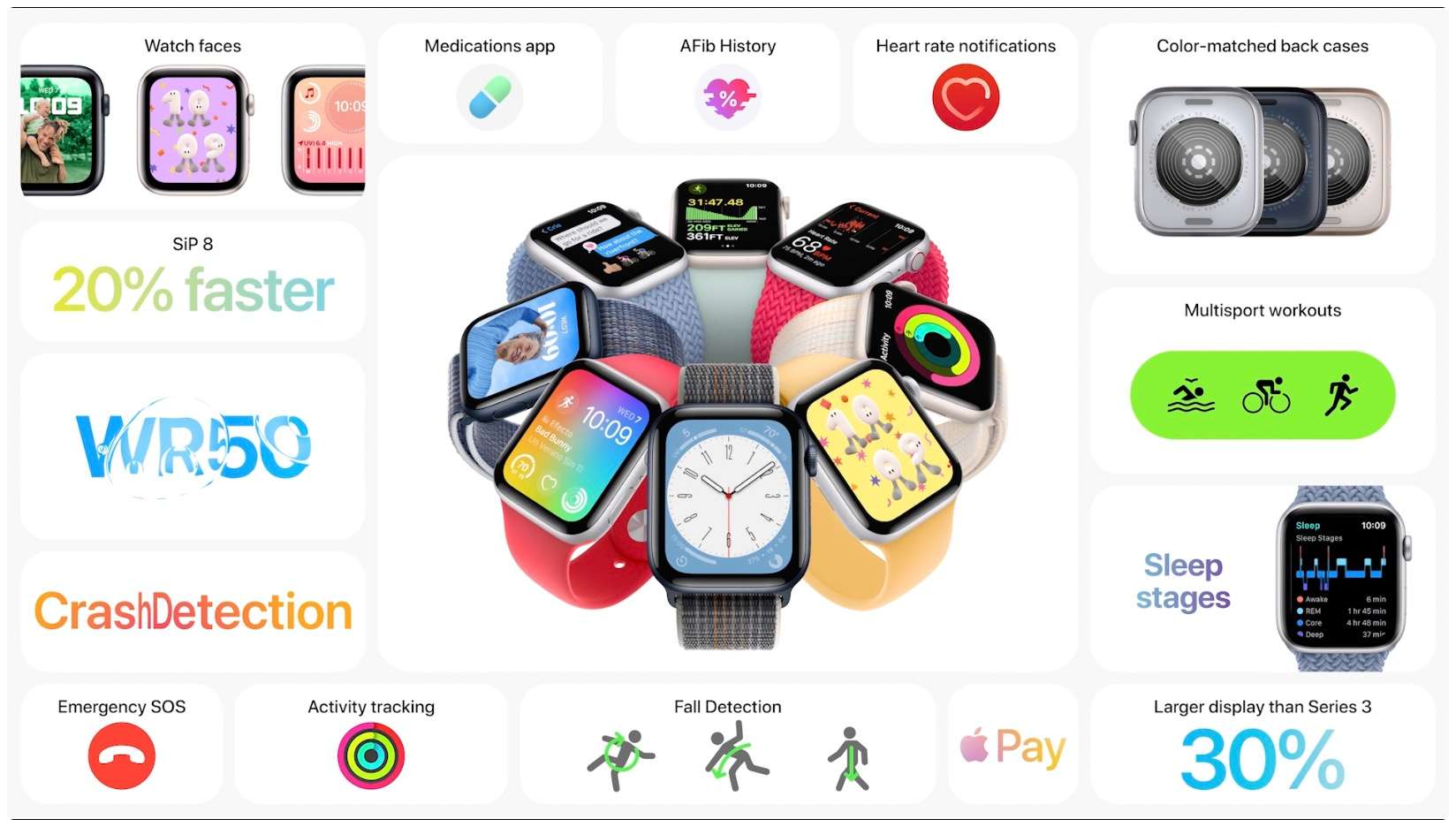Благодаря новым датчикам, часы распознают автомобильную аварию и отправляют сигнал в службу спасения в рамках функций CrashDetection и Emegrency SOS, как у старшей версии актуального поколения. На данный момент обе доступны только жителям США и Канады.