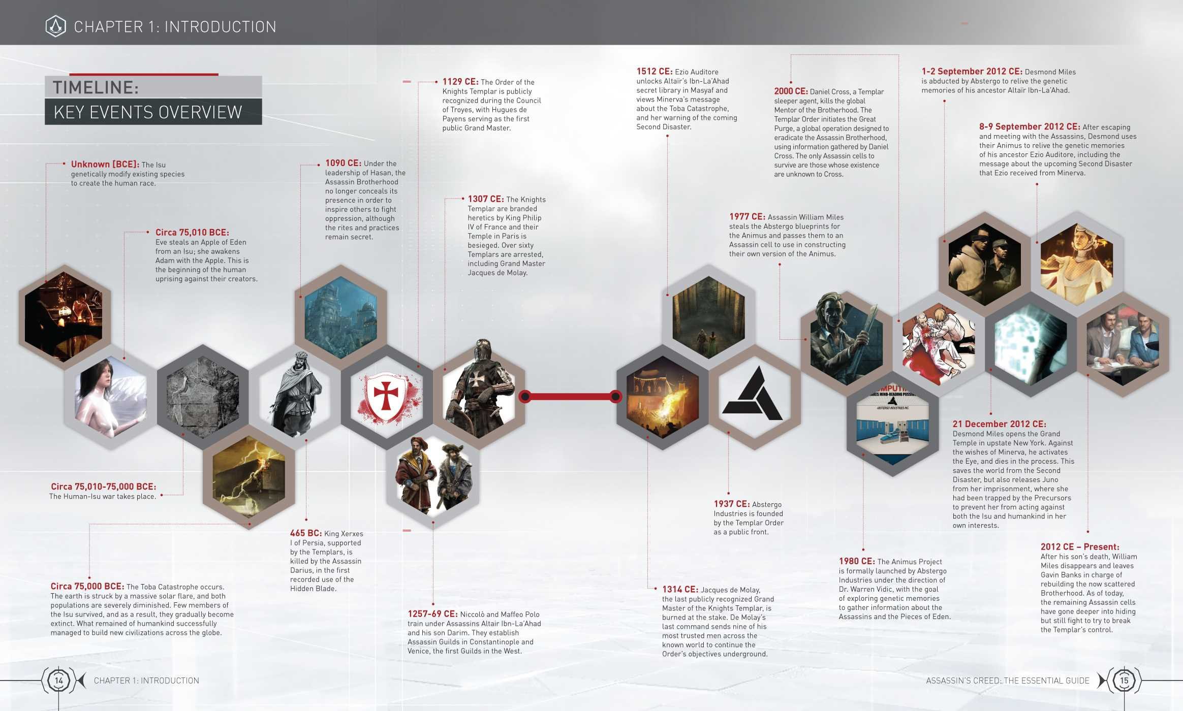 Тайная война между двумя старыми организациями, Орденом Тамплиеров и Братством Ассасинов, бушует на протяжении тысячелетий. Укомплектованный красивыми изображениями в сопровождении описаниями лора, Assassin's Creed: The Essential Guide исследует основные ключи, персонажей, технологии, исторические центры и эпическую историю этого конфликта.