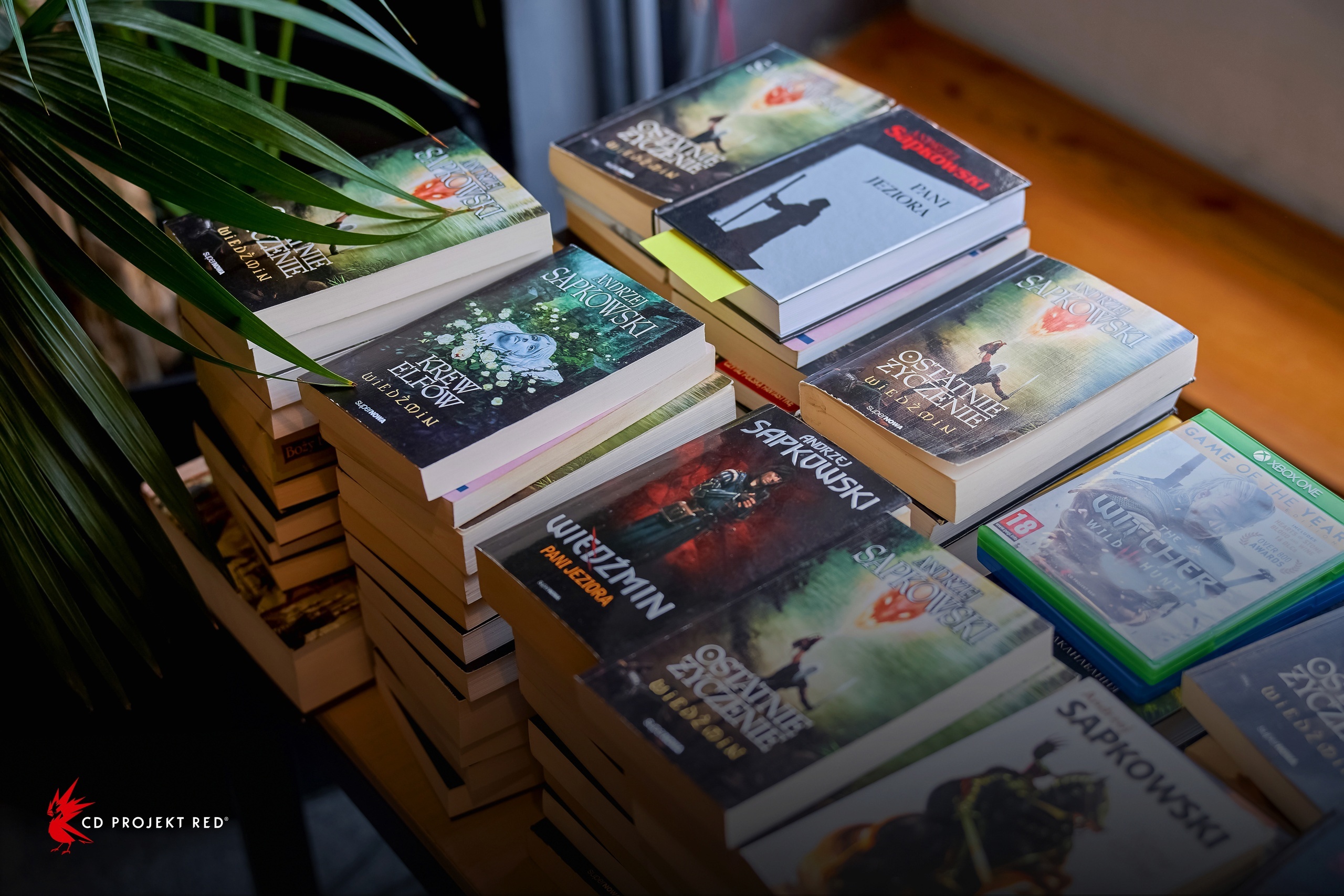 К сожалению, мы не знаем, что было главной темой закулисной беседы между писателем и разработчиками, но можем с уверенностью предположить, что встреча прошла в дружеской атмосфере. Сапковский подписал внушительную стопку книг, а в это время он даже успел заглянуть в студию захвата движения.