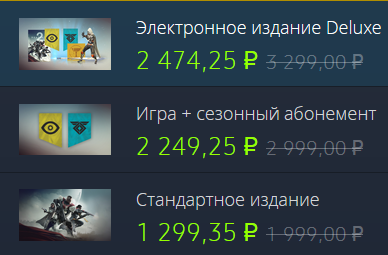 - Destiny 2 — игра + сезонный абонемент — скидка 25%
