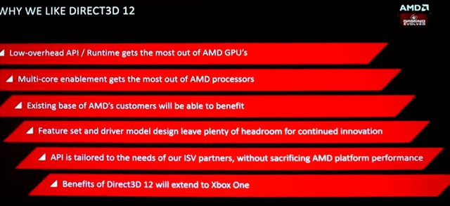 Как и было обещано, следующее поколение графического API Microsoft DirectX представлено публике на конференции разработчиков GDC 2014 в Сан-Франциско. Руководитель Microsoft по разработке графики Анудж Госалия (Anuj Gosalia) утверждает, что DirectX 12 в каком-то виде будет доступен на всех платформах Microsoft. Это соответствует принципу компании по унификации окружения на планшетах, ПК, смартфонах и игровых консолях и сближению ключевых ОС.