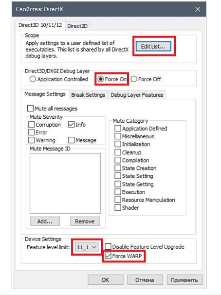 Вот ее скриншот из интернета. Добавляешь в "Edit List..." нужное приложение и оно работает через программную эмуляцию. В общем меня спасала эта программа и я играл в некоторые игры, которые не хотели запускаться на моей ВК совместимой с DX10. Но чудес она конечно не дает, так как эмуляция нагружает ЦПУ. Поэтому в игры с тяжелой графикой может сильно проседать FPS.