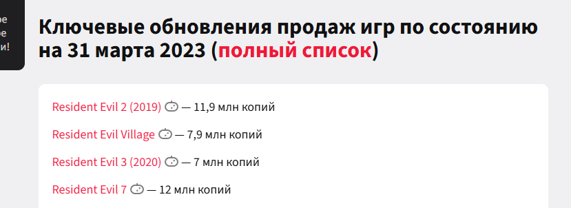 Так же достаточно глянуть продажи на момент 31 марта 23 года , подумать головой и прикинуть какие будут продажи у резика 4 спустя 4+ года после релиза