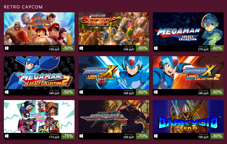 Не забыли игроделы и про свои ретро-игры - на них также распространяются сниженные цены. И если вы вдруг давно не проходили MegaMan или DarkVoid, то милости просим.