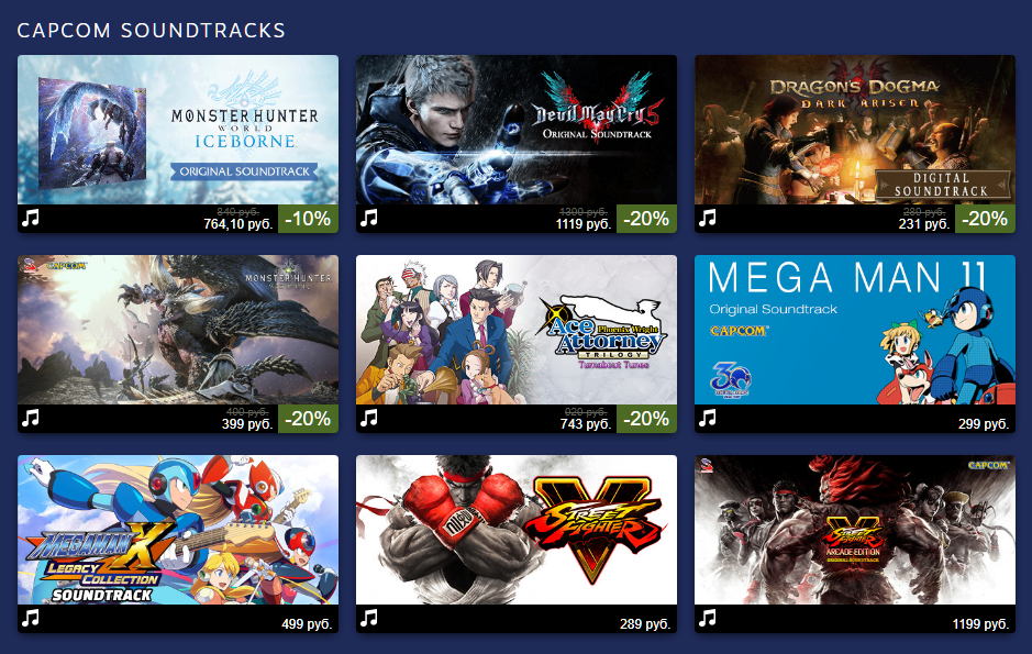 Учитывая, что распродажа Capcom появилась совместно с распродажей саундтреков, то и Capcom выкатила свой плейлист.