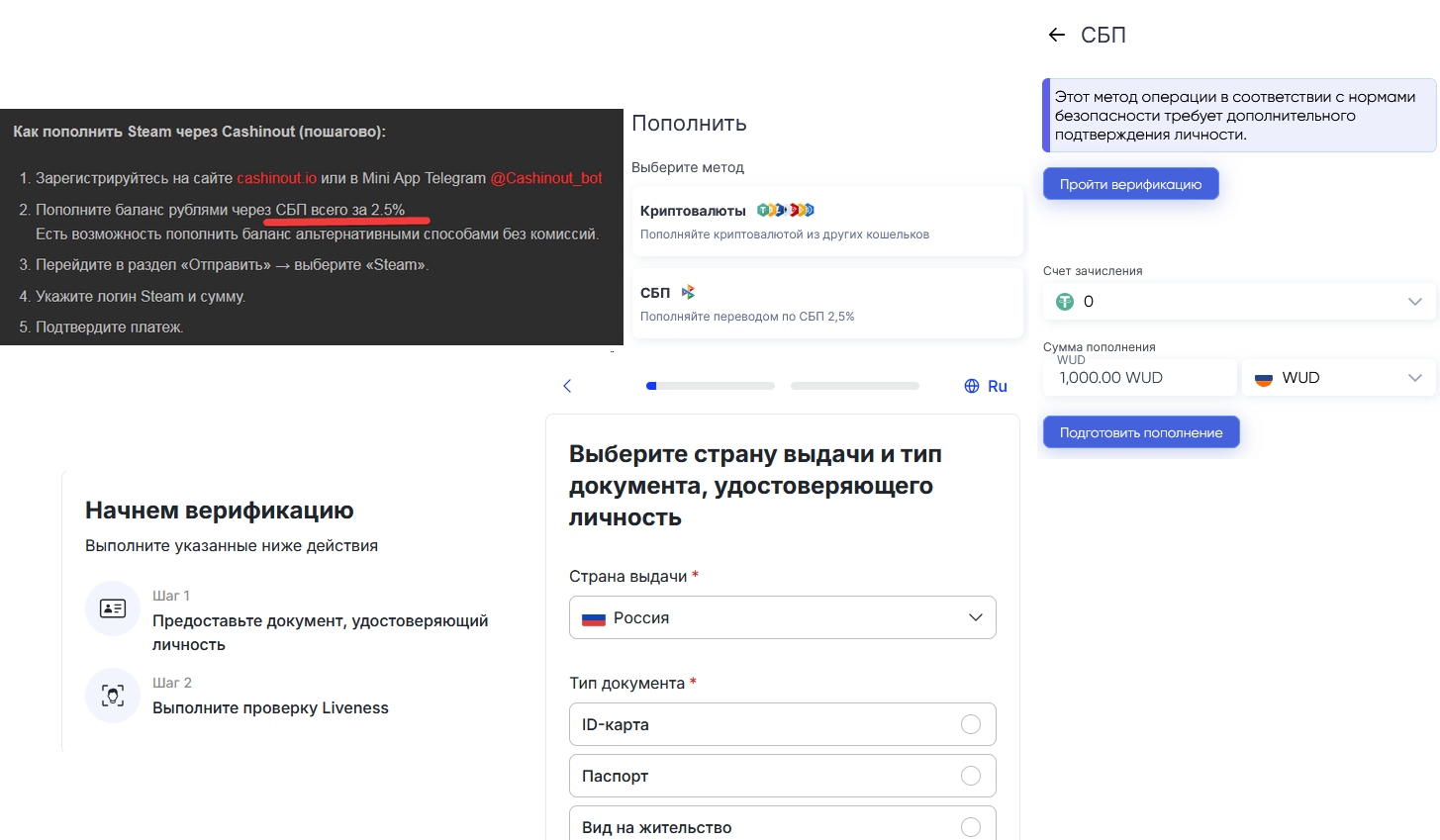 Финансовый сервис Cashinout.io объявил о запуске уникальной акции: пополнение баланса Steam с баланса Cashinout без комиссии. Вы платите только за пополнение самого кошелька по СБП комиссию 2.5%. Но есть и способы пополнения без комиссии - совсем.