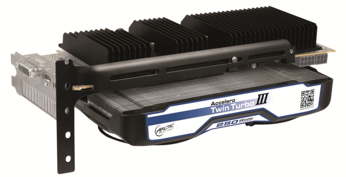 Наконец, Accelero Twin Turbo III представляет собой конструкцию из пяти 6-миллиметровых тепловых трубок, 35 алюминиевых рёбер, двух 92-миллиметровых вентиляторов и вентилятора для обратной стороны печатной платы. Цена изделия составляет $80.