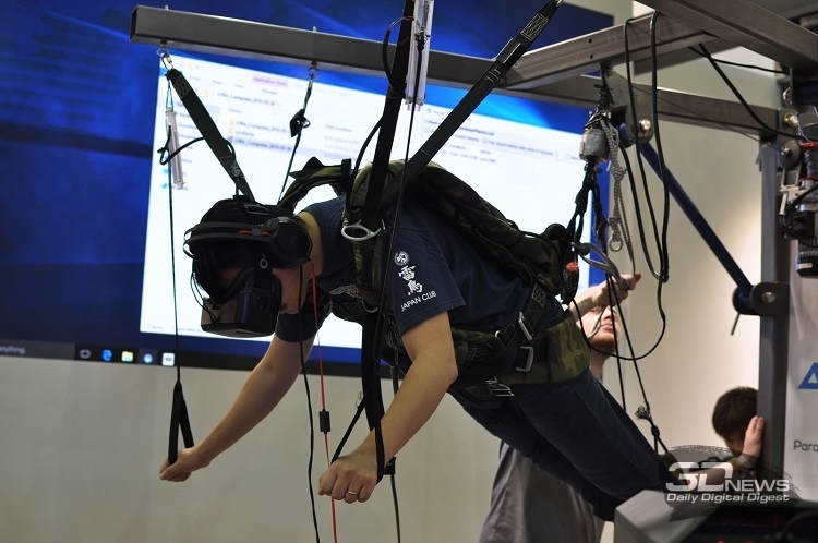 Внимание наших корреспондентов привлёк человек, пытающийся виртуально прыгнуть с парашютом с помощью VR-шлема. Впрочем, и без этого действа мы обязательно посетили бы этот стенд. Продукция компании Cooler Master знакома отечественному потребителю, и читателям наверняка интересно познакомиться с её новинками.