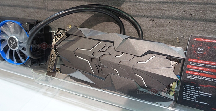 Китайская компания Colorful из года в год преподносит сюрпризы любителям оригинальных и производительных устройств. К таковым можно смело отнести её прототипы видеокарт iGame GeForce GTX 1080 Ti Kudan, Customization, Neptune W и Vulcan X OC. Модель Kudan обладает внушительными габаритами, что обусловлено размерами её кулера и применением (16+2)-фазной системы питания. По аналогии с картами ASUS ROG Poseidon, основание iGame GTX 1080 Ti Kudan имеет канал для тока жидкости. Для разгона видеоадаптера будет достаточно нажать специальную кнопку на задней панели. С частотной формулой новинки Colorful пока не определилась.